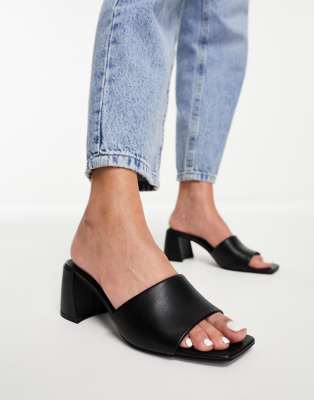 Stradivarius – Svarta sandaler med fyrkantig tå och grov klack