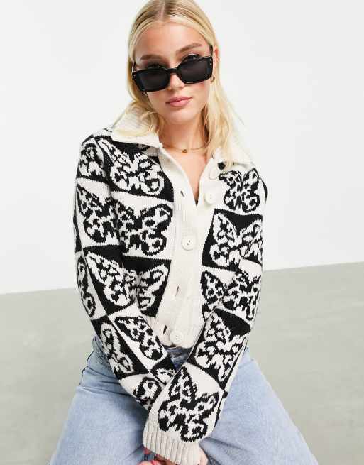 Stradivarius – Svartvit kofta med fjärilsmönster
