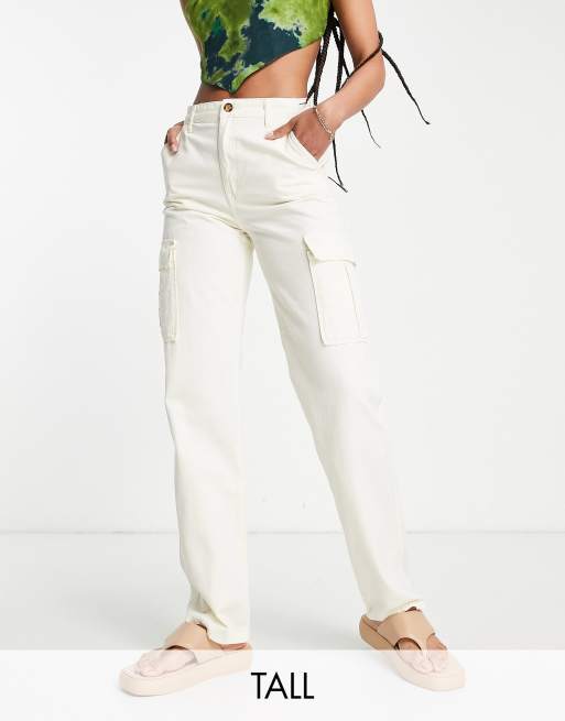 Stradivarius Tall – STR – Vita cargobyxor med raka ben