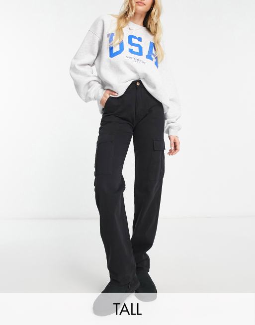 Stradivarius Tall – Svarta cargobyxor med raka ben