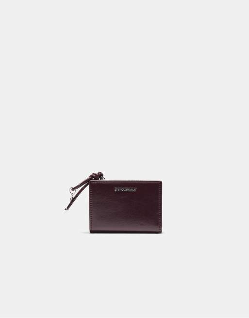 Stradivarius – Vinröd plånbok med korthållare och rem