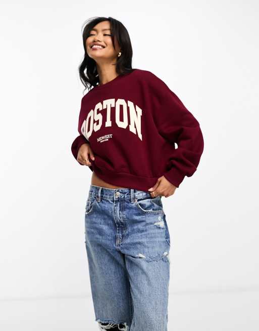 Stradivarius – Vinröd slouchy sweatshirt med Boston-tryck