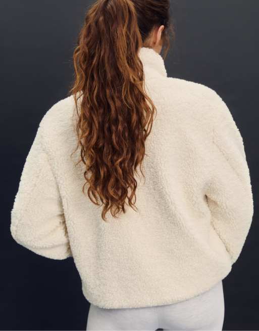 Stradivarius – Vit jacka med dragkedja och foder av fårskinnsimitation