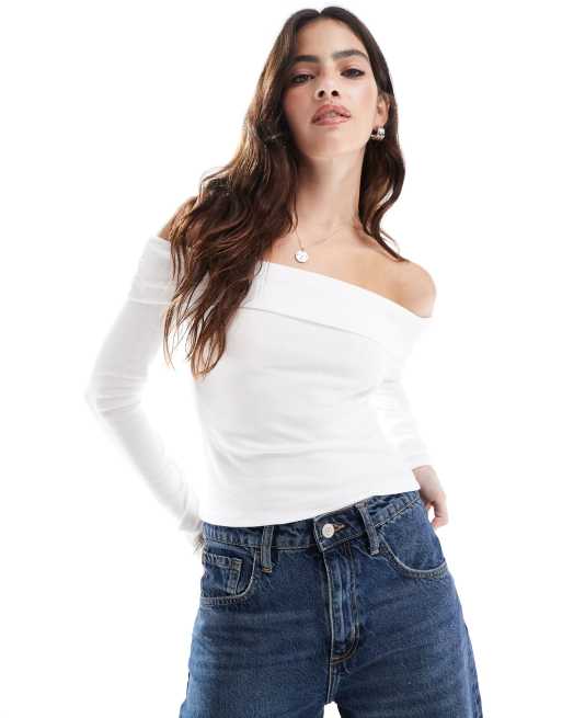 Stradivarius – Vit off shoulder-topp