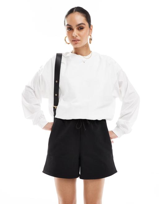 Stradivarius – Vit tröja med långa ärmar och ballongdetalj