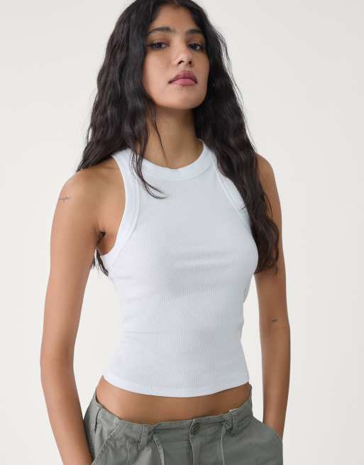 Stradivarius – Vitt, ribbat linne med brottarringning