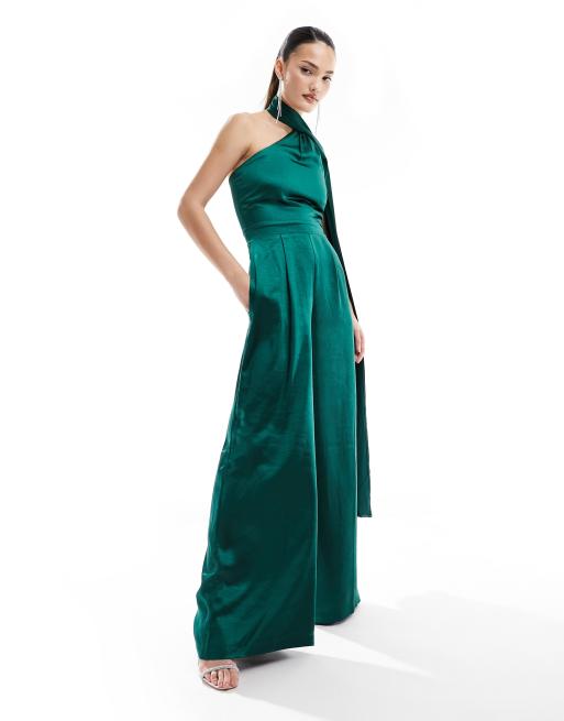 Style Cheat – Blågrön jumpsuit i satin med sjal – Endast hos ASOS
