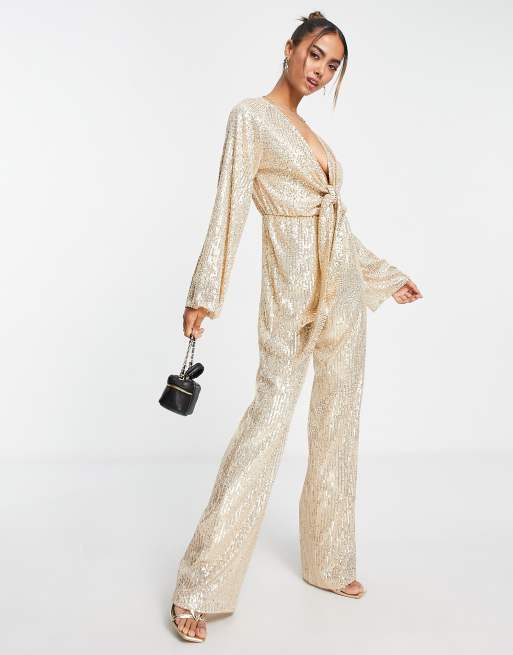 Style Cheat – Guldfärgade, paljettjklädd jumpsuit med knytning fram