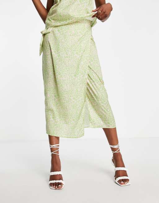Style Cheat – Leopardmönstrad midikjol i satin med omlottdesign, del av set