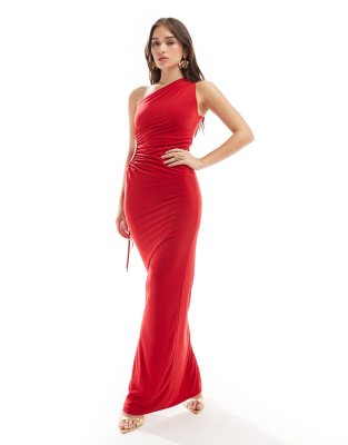 Style Cheat – Röd enaxlad maxiklänning med åtsmitande design och utskurna detaljer i sidan