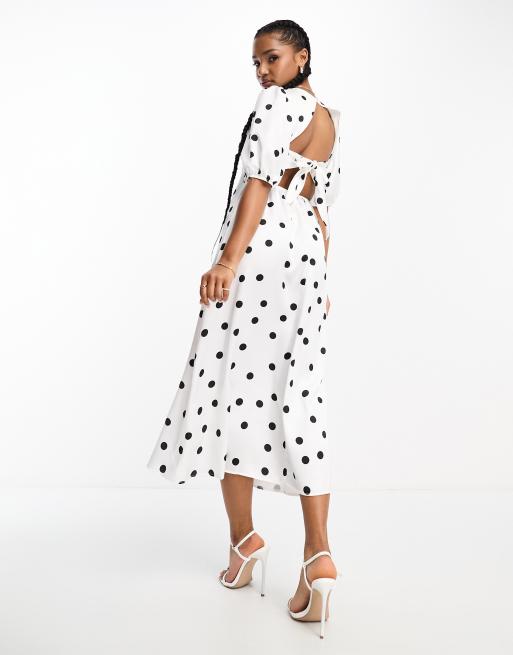 Style Cheat – Vit, prickig midiklänning med knytning baktill