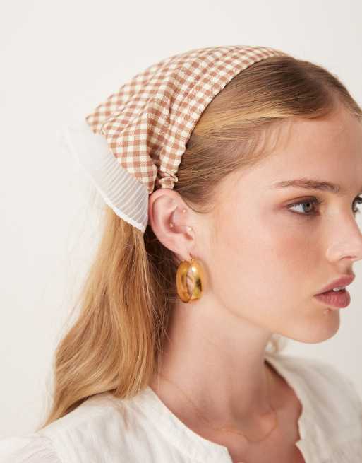 Sui Ava – Beige, ginghamrutig hårsjal