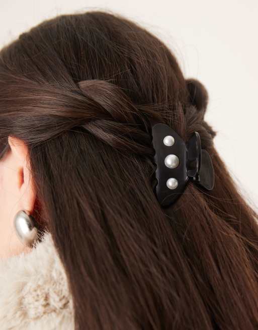SUI AVA – Ida – Svart, liten hårklämma med klassiska pärlor