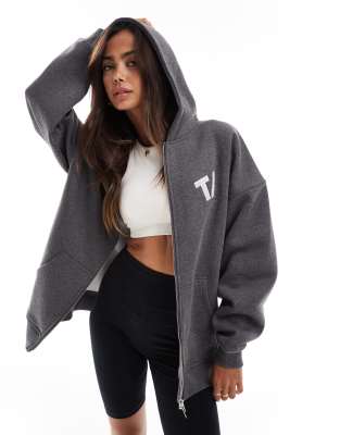 TALA – Mörkgrå oversize huvtröja med dragkedja