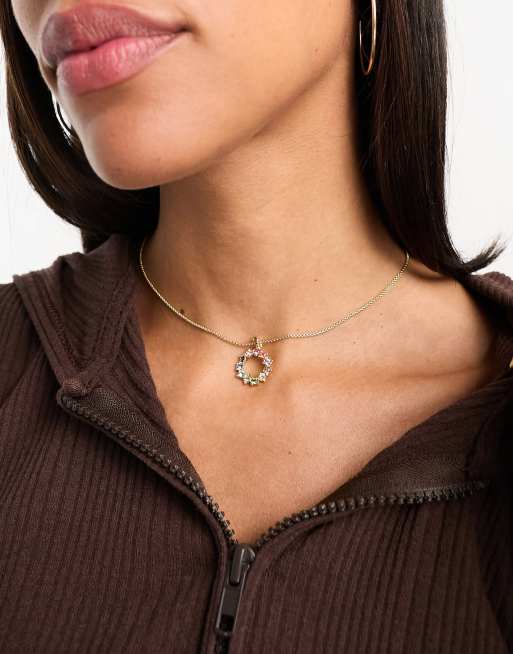 Ted Baker – Cresar – Guldfärgat halsband med regnbågsfärgad strass