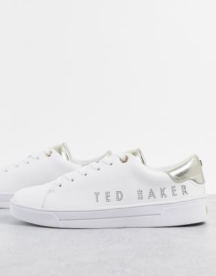 Ted Baker – Vita sneakers med metallisk logga