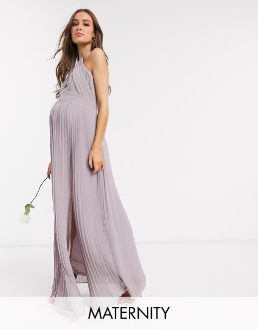 TFNC Maternity – Brudtärna – Grå, plisserad maxiklänning, endast hos ASOS