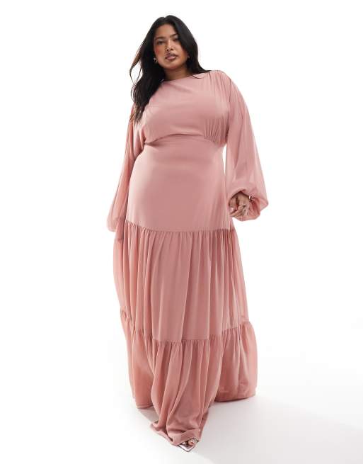 TFNC Plus – Brudtärnor – Dimrosa maxiklänning i chiffong med panelsydd kjol
