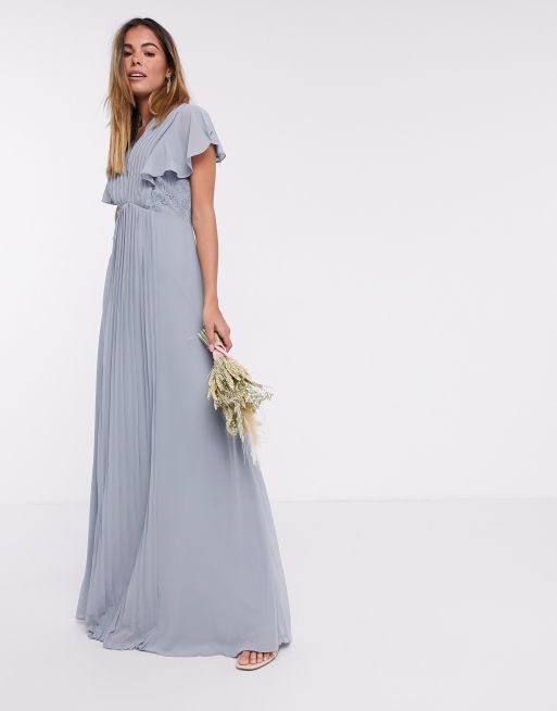 TFNC – Brudtärna – Duvblå maxiklänning med spetsdetaljer och böljande ärm