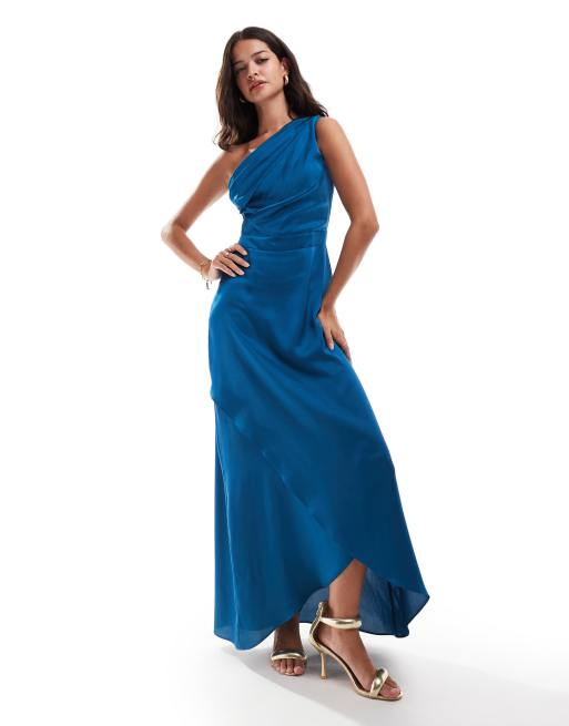 TFNC – Brudtärnor – Blågrön, enaxlad maxiklänning i satin