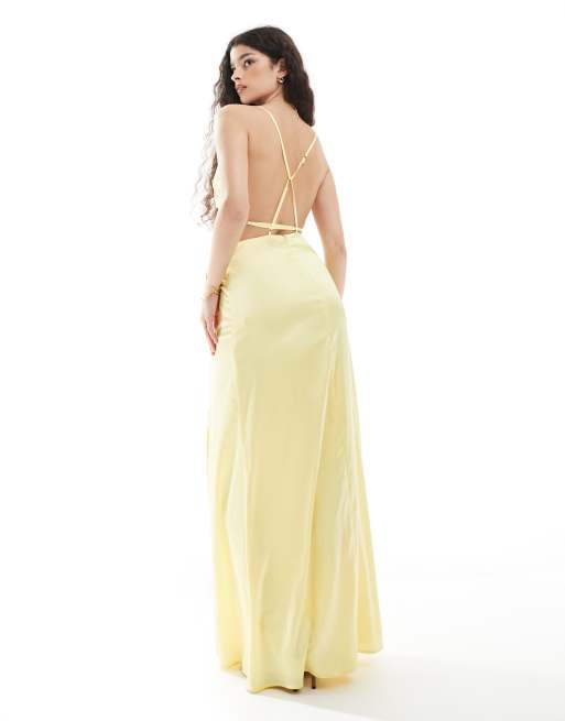 TFNC – Brudtärnor – Citrongul maxiklänning i satin med detaljer baktill