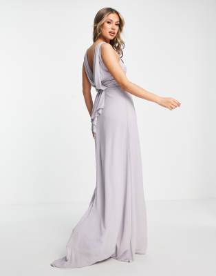 TFNC – Brudtärnor – Grå maxiklänning med draperad rygg och hög krage