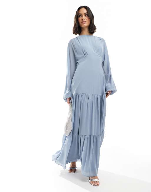 TFNC – Brudtärnor – Ljusblå maxiklänning i chiffong med panelsydd kjol