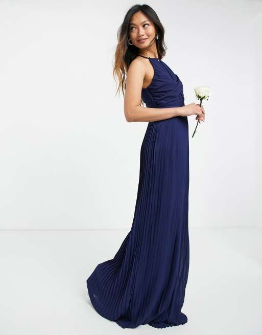 TFNC – Brudtärnor – Marinblå plisserad maxiklänning med omlottdesign