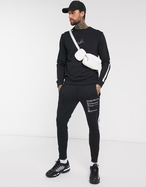 The Couture Club – Definition – Svart träningsoverall med tejpade detaljer