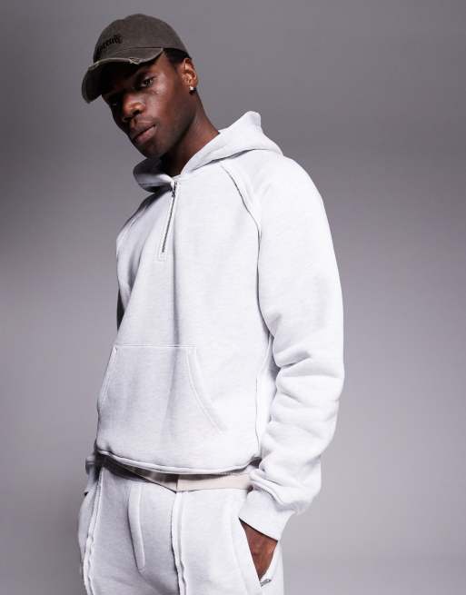 The Couture Club – Gråmelerad huvtröja med råskurna sömmar och logga, del av set