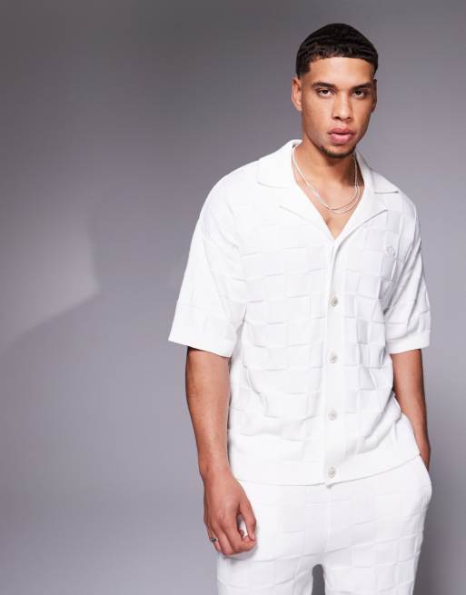 The Couture Club – Naturvit, schackrutig, stickad skjorta, del av set