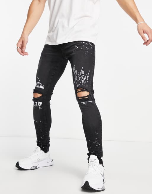 The Couture Club – Svarta smala jeans med broderi och knärevor