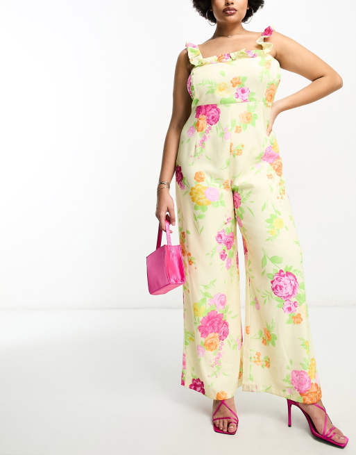 The Frolic Plus – Flerfärgad, blommig jumpsuit med volang och vida ben