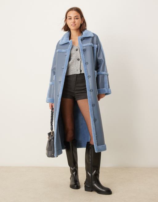 The Frolic – Blå, exklusiv maxikappa i fårskinnsimitation