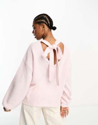The Frolic – Ljusrosa, supermjuk tröja med puffärmar och rosett baktill