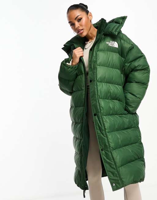 The North Face – Acamarachi – Mörkgrön lång pufferjacka i oversize – Exklusivt hos ASOS