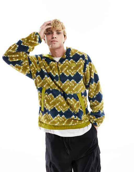 The North Face – Campshire – Blå fleecetröja med huva, kort dragkedja och geometriskt mönster
