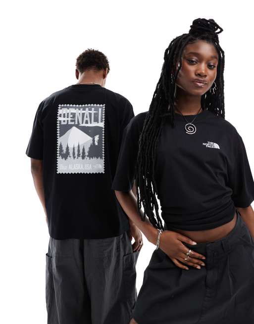 The North Face – Denali – Svart t-shirt i oversize med bergstryck baktill