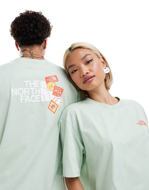 The North Face – Expedition Stickers – Ljusgrön t-shirt i oversize med tryck baktill, endast hos ASOS
