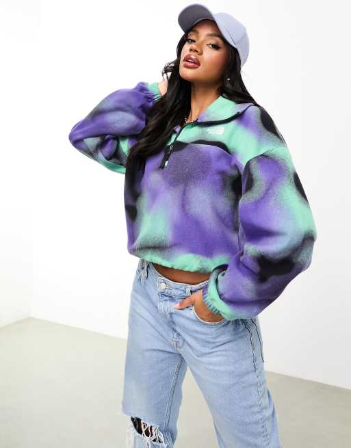 The North Face – Glacier – Blå, boxig fleecetröja med bred krage, 1/4-lång dragkedja och marmortryck, exklusivt hos ASOS