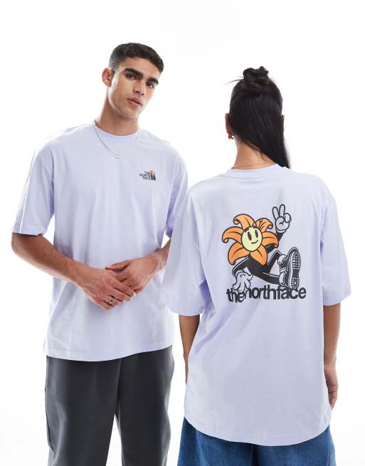 The North Face – Ljusblå t-shirt i oversize med blommigt tryck baktill, exklusivt hos ASOS