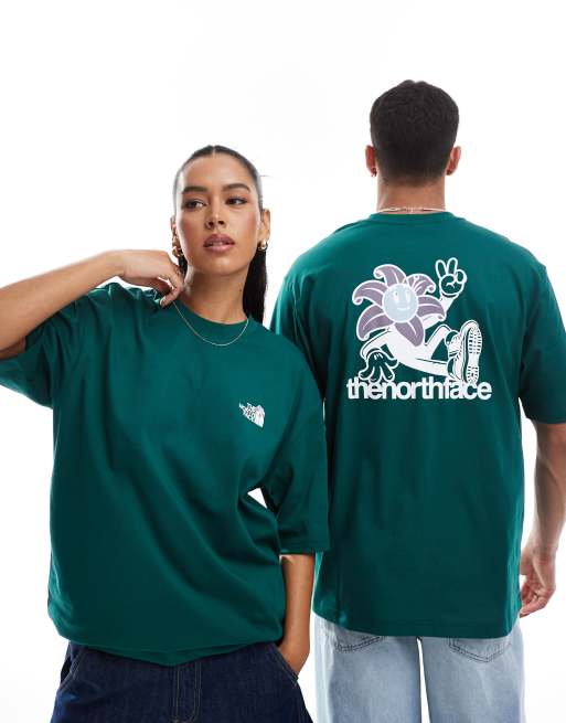 The North Face – Mörkgrön t-shirt i oversize med blommigt tryck baktill, exklusivt hos ASOS