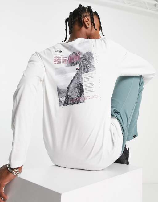 The North Face – Naturvit långärmad t-shirt med kollage baktill, exklusivt hos ASOS