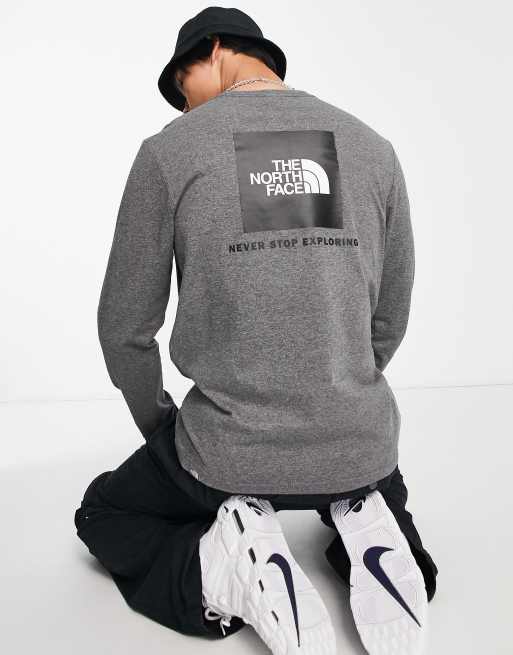 The North Face – Redbox – Gråmelerad t-shirt med långa ärmar och tryck baktill