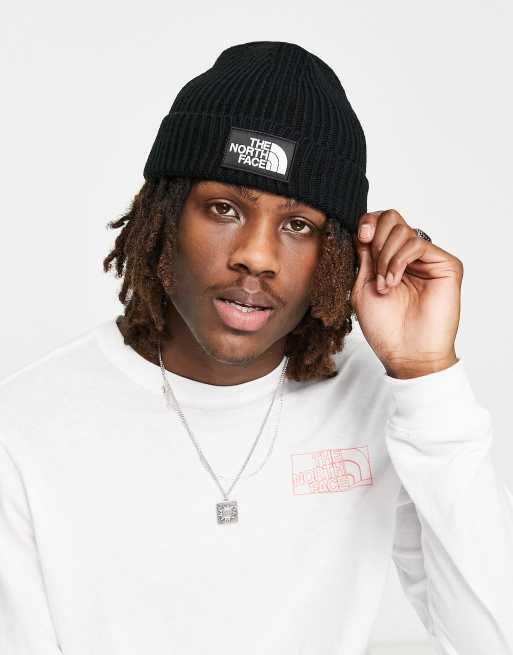 The North Face – Svart mössa med fyrkantig logga och uppvikt kant