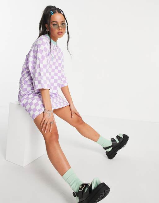 The Ragged Priest – Lila schackrutig t-shirtklänning i oversize