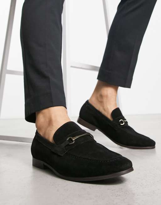 Thomas Crick – Svarta loafers i mocka med metallspänne