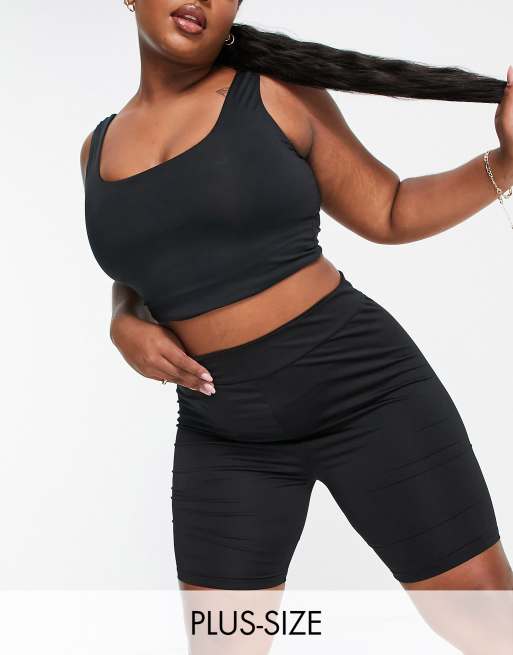 Threadbare – Fitness plusstorlek – Svarta, korta gymleggings