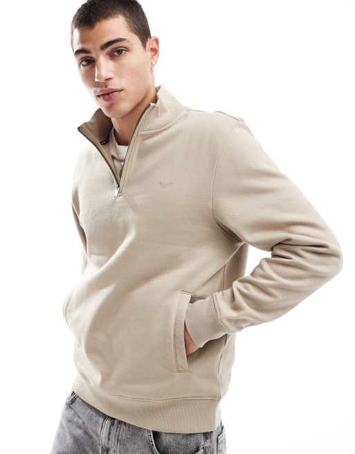 Threadbare – Beige sweatshirt med kvartslång dragkedja