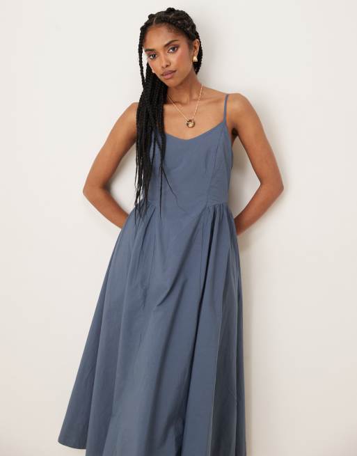 Threadbare – Blå midiklänning i bomull med sänkt midja